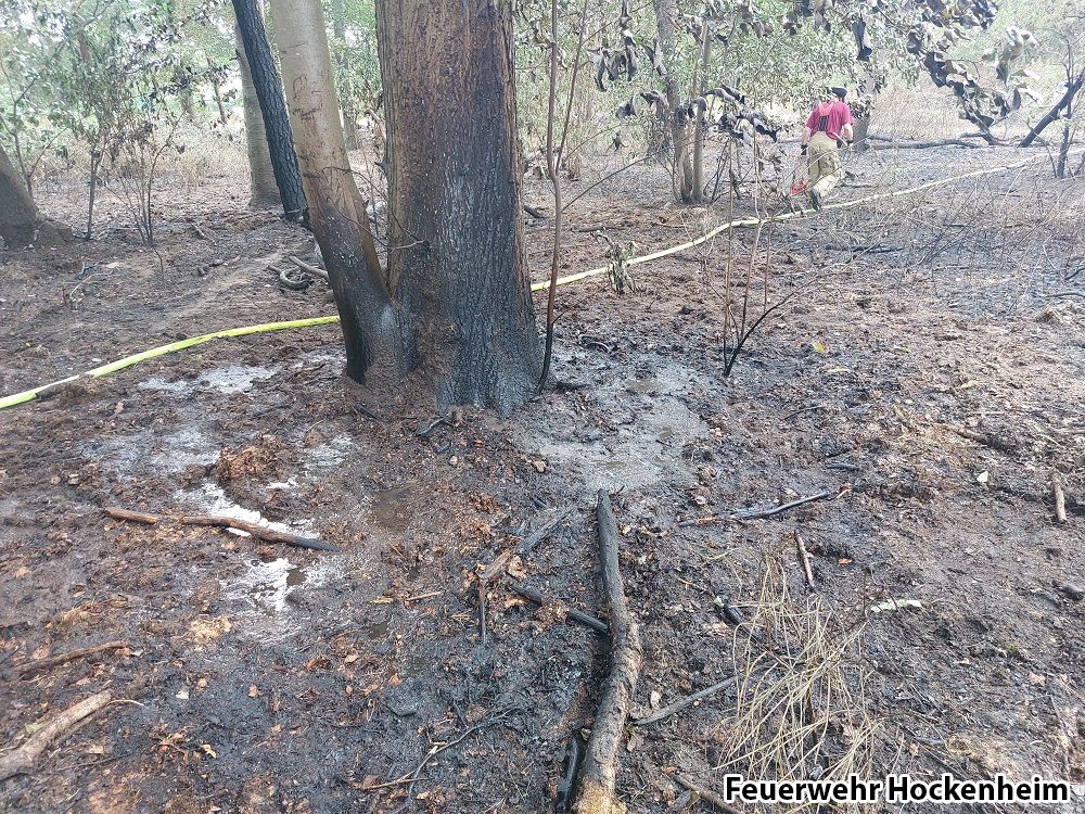 Die Feuerwehr Hockenheim hat den Boden mit einer Dunghacke geöffnet und mit einem C-Strahlrohr bewässert.