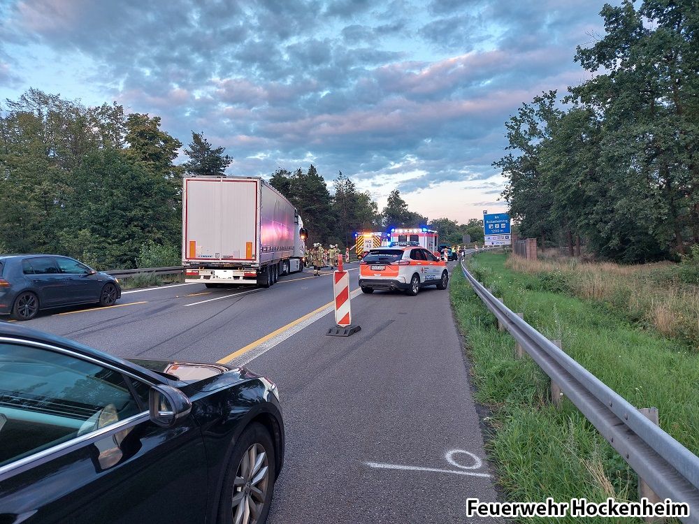 Die Feuerwehr Hockenheim wurde zu einem Verkehrsunfall auf die BAB A61 alarmiert.