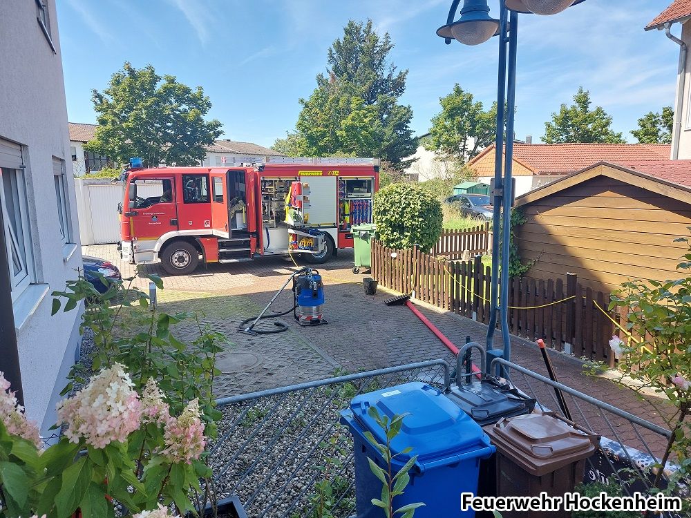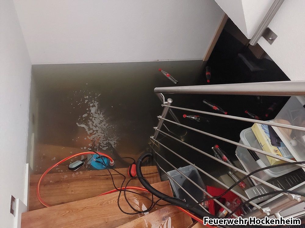 Der Feuerwehr Hockenheim wurde Wasser im Keller gemeldet. Ca. 1m hoch auf 90 m².