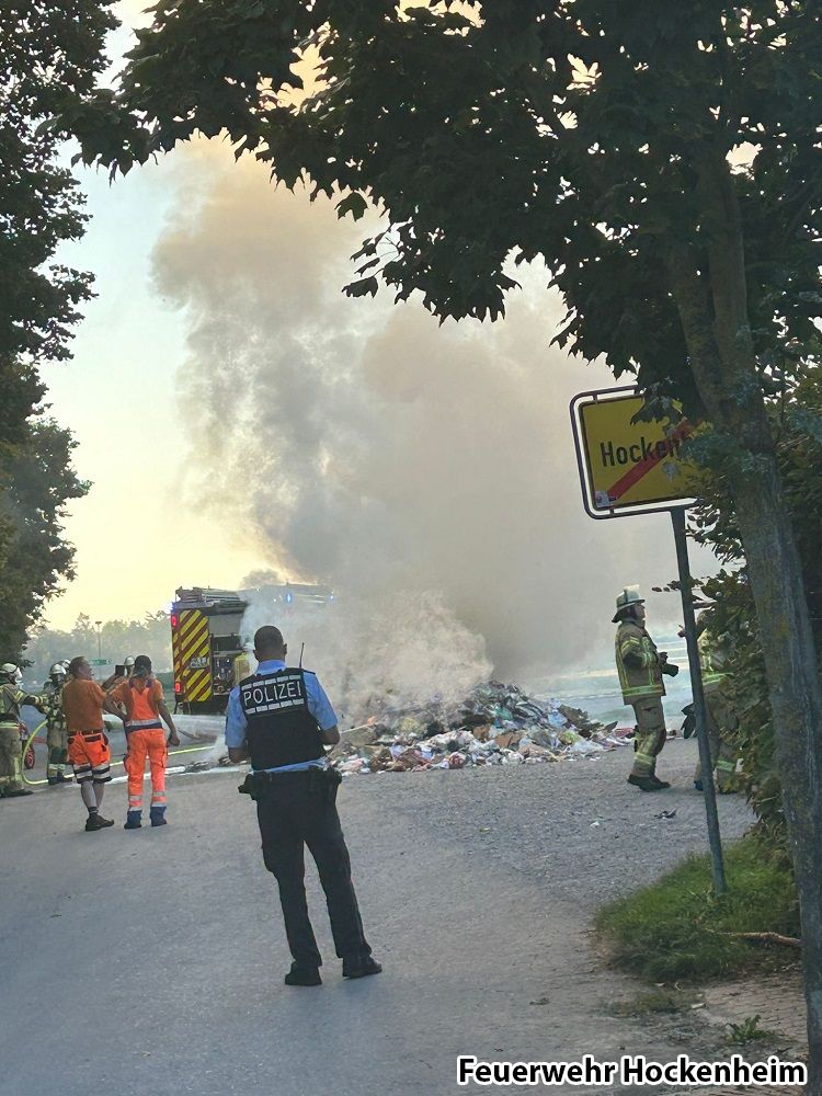 Der Feuerwehr Hockenheim wurde ein Brand eines Müllfahrzeuges gemeldet.