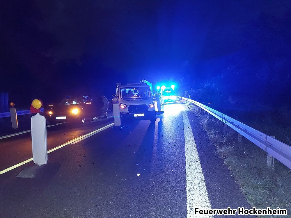 Bei Eintreffen an der Einsatzstelle wurde ein Auffahrunfall mit einem LKW, Kleintransporter sowie 2 PKW`s vorgefunden. Es waren keine Personen eingeklemmt. 2 Personen wurden vom Rettungsdienst betreut. Die Feuerwehr Hockenheim hat ausgelaufene Betriebsstoffe mit Bindemittel aufgenommen. Keine weiteren Tätigkeiten. Die Einsatzstelle wurde an die Polizei übergeben.