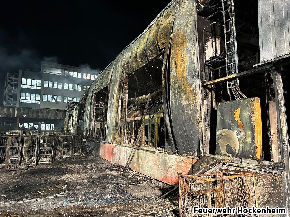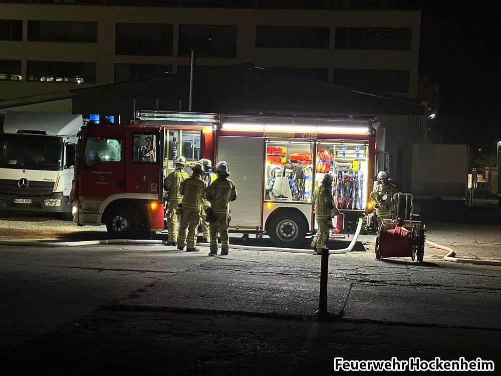 Die Feuerwehr Hockenheim wurde zur Nachtwache nach einem Großbrand nach Walldorf alarmiert.