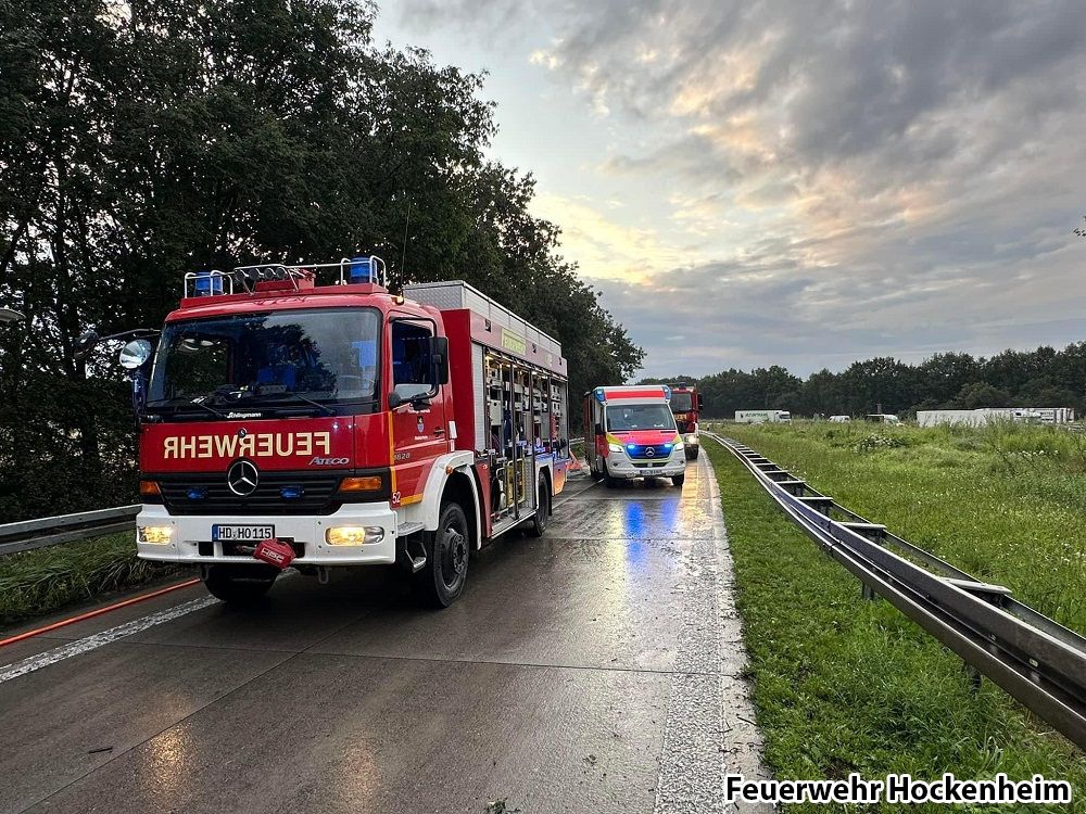 Die Feuerwehr Hockenheim wurde zu einem Verkehrsunfall mit einem LKW auf die BAB 6 alarmiert.