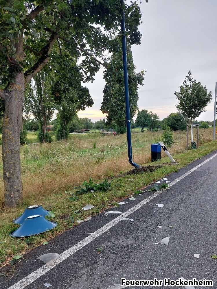 Am Straßenrand stand eine Laterne, welche das Fahrzeug umgefahren hat. Es wurden die Stadtwerke zur Unterstützung gerufen und anschließend wurde die Laterne mit der Seilwinde umgelegt.