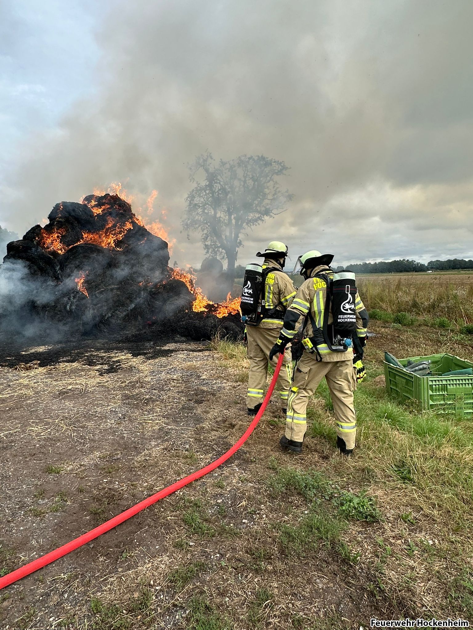 Bei Eintreffen an der Einsatzstelle brannten ca. 200 Strohballen. Die Feuerwehr Hockenheim unterstützte die Feuerwehr Reilingen bei der Brandbekämpfung. Gegen 10.20 Uhr wurde die Feuerwehr Hockenheim aus dem Einsatz entlassen.