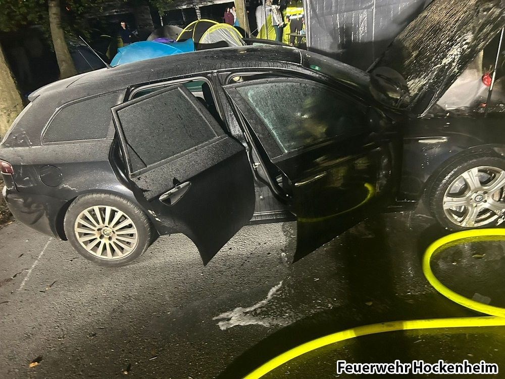 Die Feuerwehr Hockenheim wurde zu einem PKW Brand auf den Campingplatz C 3 alarmiert.