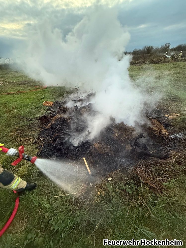 Bei Eintreffen an der Einsatzstelle wurden 2 brennende Holzstapel vorgefunden. Diese wurden abgelöscht. Die Feuerwehr Hockenheim hat die Polizei hinzugezogen.