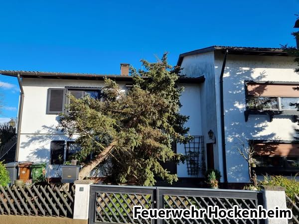 Die Feuerwehr Hockenheim wurde zu einem Baum auf Haus "Hinter den Bergen" alarmiert.