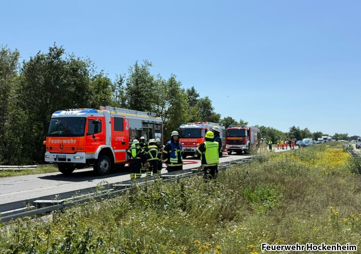Die Feuerwehr Hockenheim und Walldorf wurden zu einem LKW Brand auf die BAB5 alarmiert.