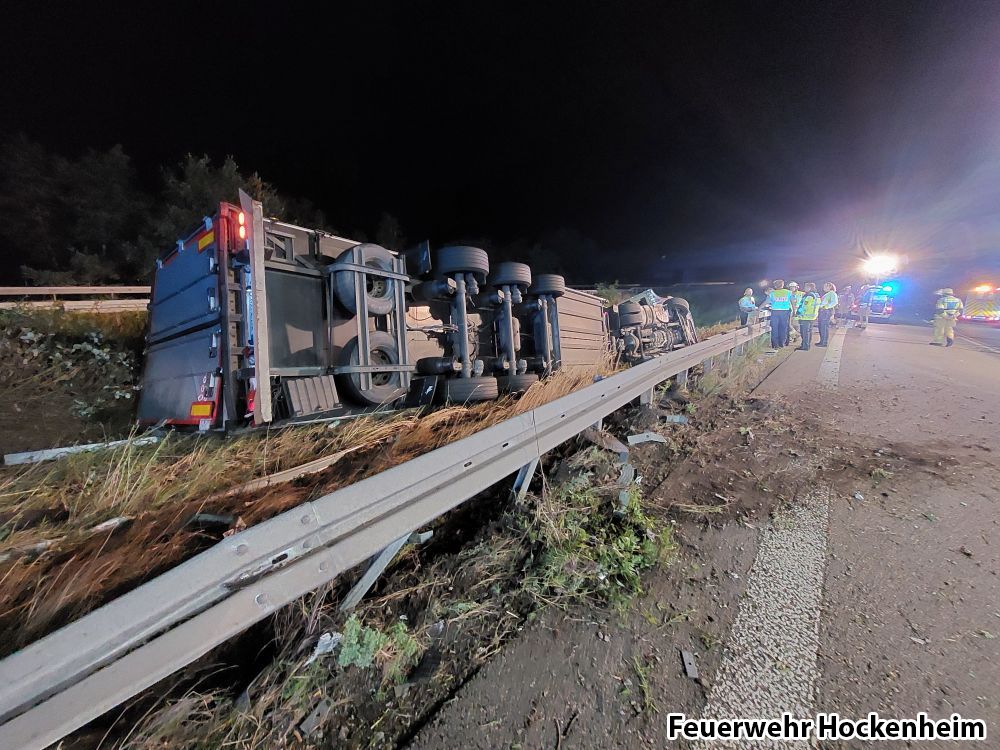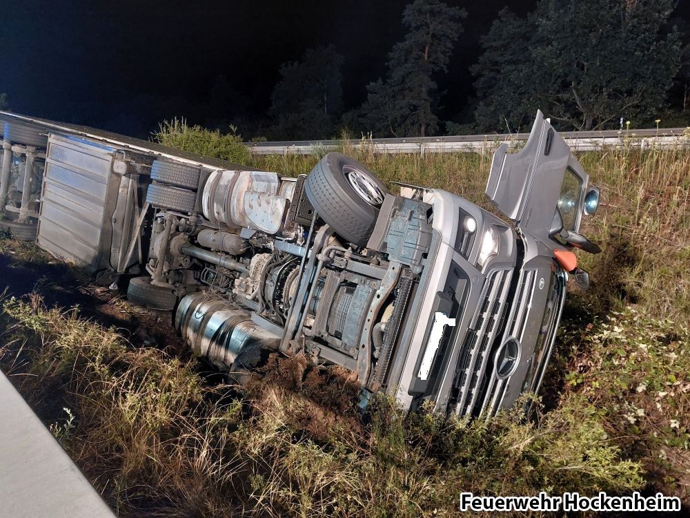 Die Feuerwehr Hockenheim wurde zu einem Unfall mit einem LKW auf die BAB61 alarmiert.