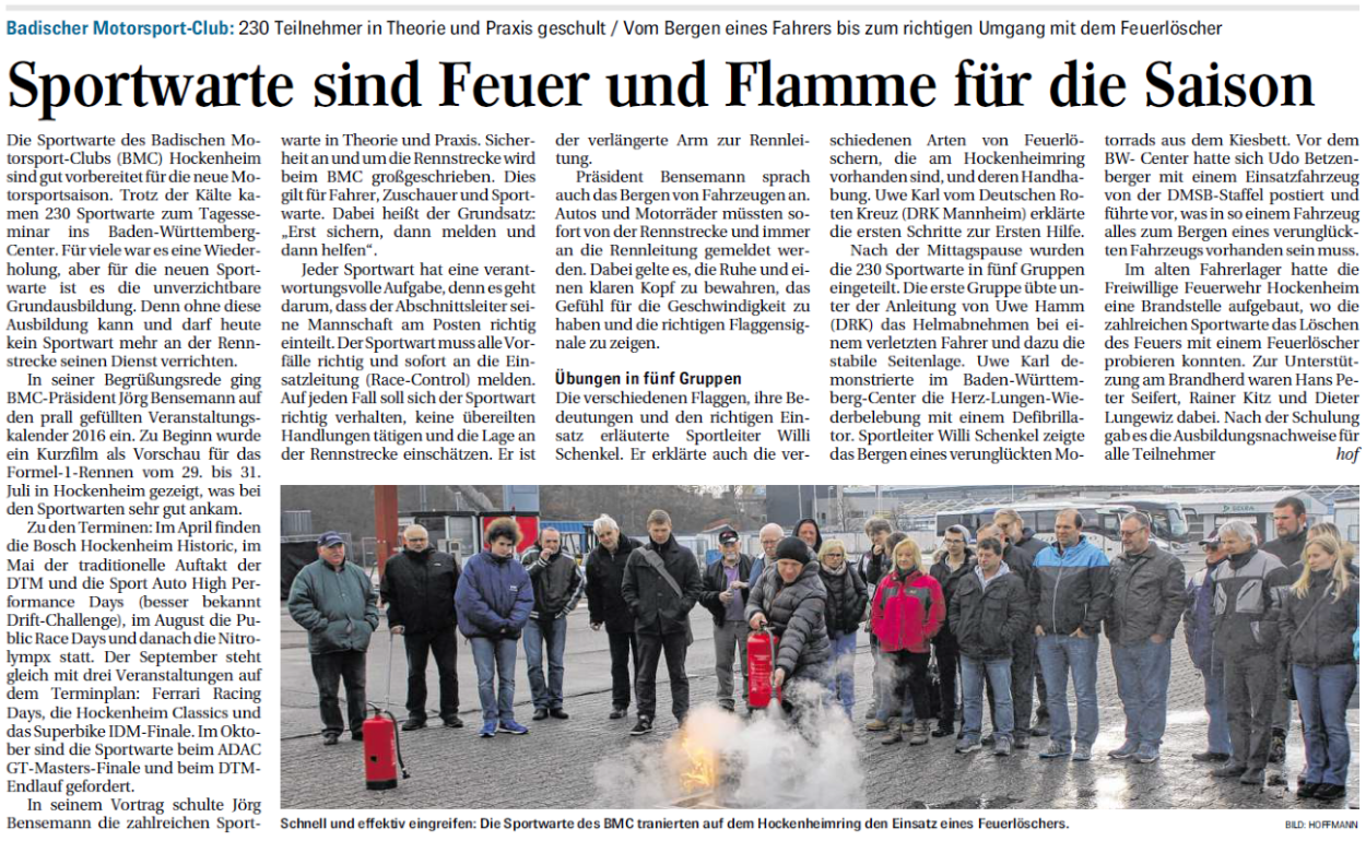 Die Sportwarte des Badischen Motorsport- Clubs (BMC) Hockenheim sind gut vorbereitet für die neue Motorsportsaison. Trotz der Kälte kamen 230 Sportwarte zum Tagesseminar ins ....