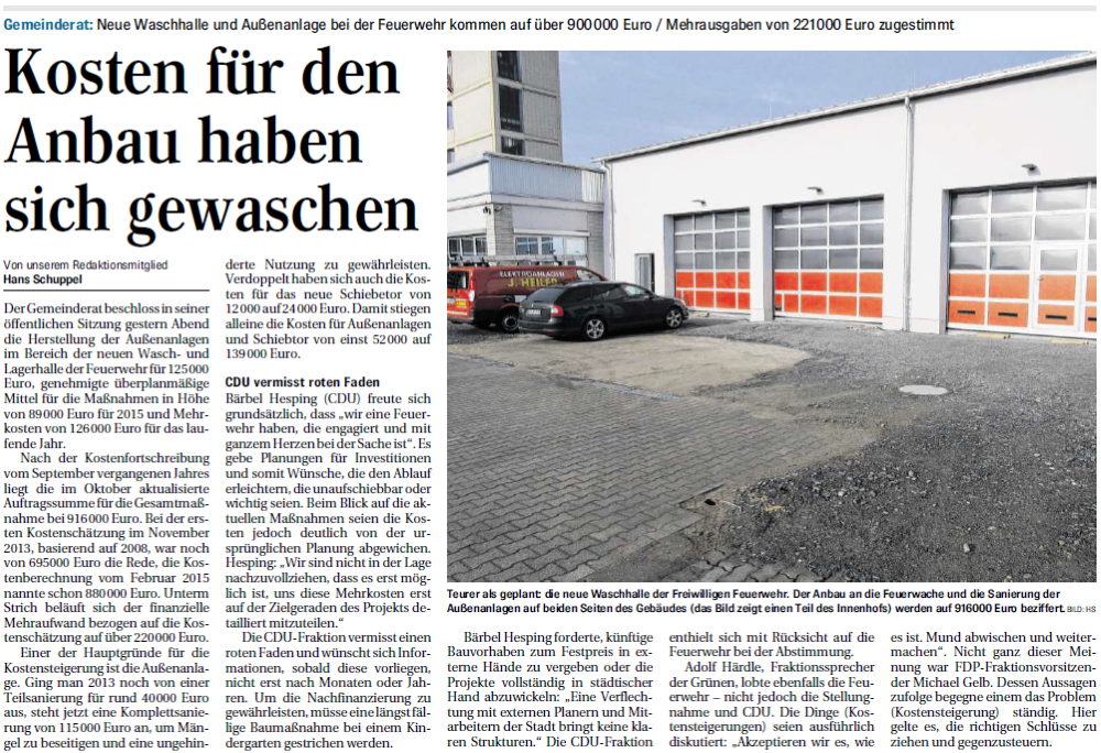 Neue Waschhalle und Außenanlage bei der Feuerwehr kommen auf über 900000 Euro