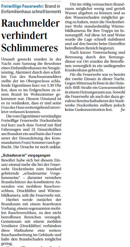 Einfamilienhauses im Neugärtenring. Alarmiert durch den schrillen Ton des
