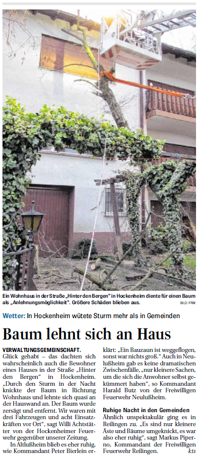 in der Straße „Hinter den Bergen“ in Hockenheim. „Durch den Sturm in der Nacht