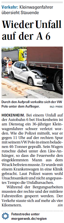 Wieder Unfall auf der A 6
