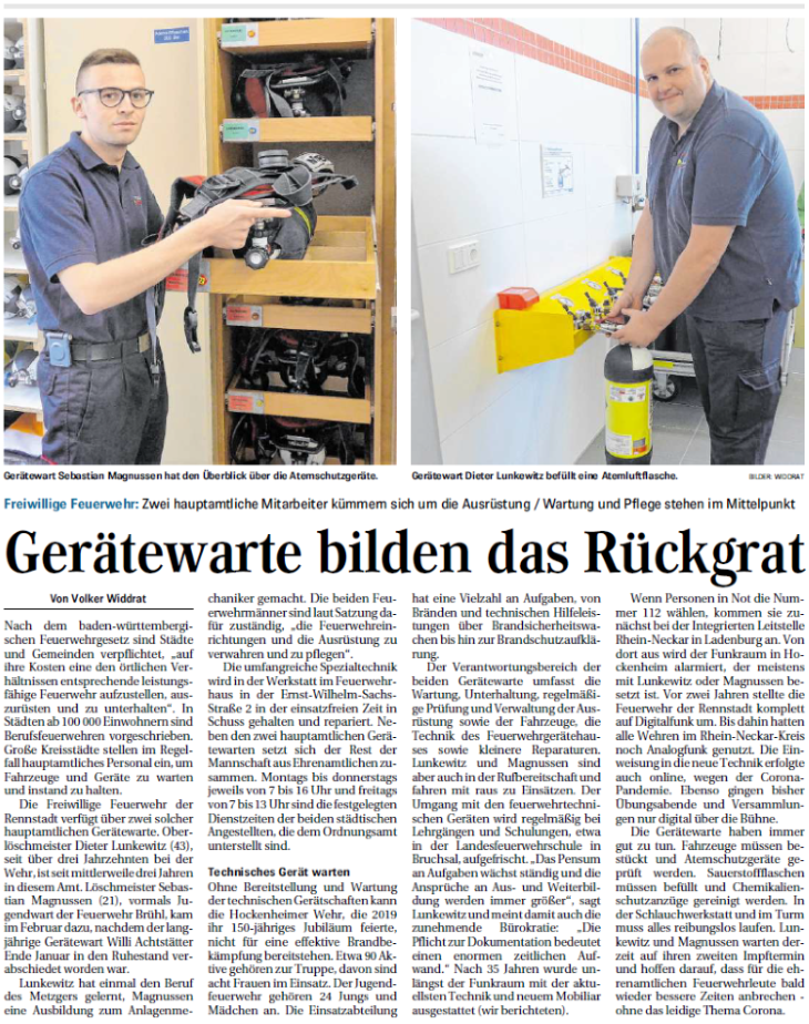 Wartung und Pflege stehen im Mittelpunkt Nach dem baden-württembergischen Feuerwehrgesetz sind Städte und Gemeinden verpflichtet, „auf ihre Kosten eine den örtlichen Verhältnissen entsprechende leistungsfähige Feuerwehr aufzustellen, auszurüsten und zu unterhalten“. In Städten ab 100 000 Einwohnern sind Berufsfeuerwehren vorgeschrieben. Große Kreisstädte stellen im Regelfall hauptamtliches Personal ein, um Fahrzeuge und Geräte ....