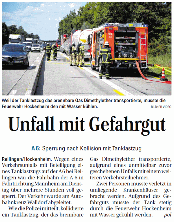 Bei Verkehrsunfall wird ein 69-Jähriger lebensgefährlich verletzt Zu einem schweren Verkehrsunfall ist es am Donnerstag, 23. Juni, gegen 10.10 Uhr auf der L723, der Landstraße von Hockenheim Richtung Walldorf gekommen - in Höhe der Einmündung der verlängerten Reilinger Straße und dem Abzweig Richtung Reilingen, der L599. Ein 69-Jähriger wurde dabei mit seinem Motorroller von einem Sattelzug erfasst ...