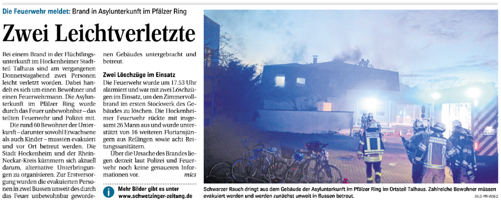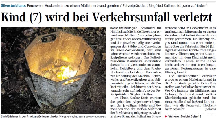 Mülltonne und Kartons brennen Polizei und Feuerwehr sind am Mittwochabend gegen 21:30 ausgerückt, nachdem in der Straße "Tiefer Weg" eine Mülltone in Brand geraten war. Beim Eintreffen der Einsatzkräfte habe der Eigentümer laut Pressemitteilung des Polizeireviers Hockenheim das Feuer bereits mit Wasser aus einem Gartenschlauch ....