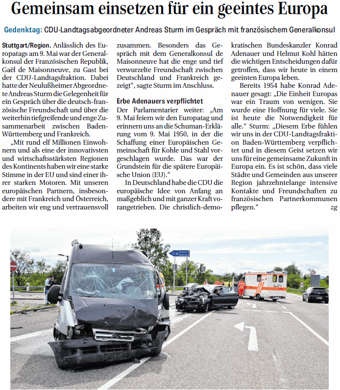 Hockenheim Glimpflich ausgegangen ist der Zusammenstoß zwischen einem Wohnmobil und einem BMW am Mittwochnachmittag kurz nach 15 Uhr aufder L 722 zwischen Salierbrücke und Hockenheim-Talhaus an der Abfahrt auf die Autobahn 61 in Richtung Heilbronn/Karlsruhe. Wie ein Sprecher des Polizeipräsidiums Mannheim auf Anfrage mitteilte, wurde keiner der Beteiligten ....
