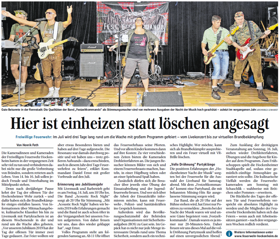 Feuerwehrfest: Wo könnte eine Band, die für ihre Musik derart brennt wie die „Acoustic Rock Night“, besser aufgehoben sein als bei der Feuerwehr? Eben darum spielt das Musikerkollektiv am Freitag, 14. Juli, ab 20 Uhr beim Feuerwehrfest in der Hockenheimer Wache. Für die zwölf Musiker um Frontfrau Rebecca Schell ist es der dritte öffentliche Auftritt .....