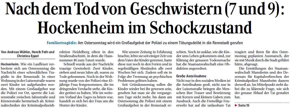 Nach dem Tod von Geschwistern (7 und 9): Hockenheim im Schockzustand
